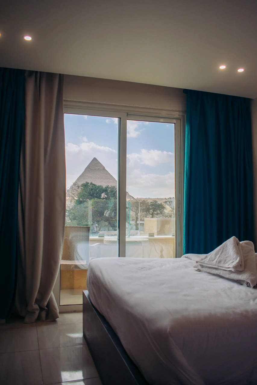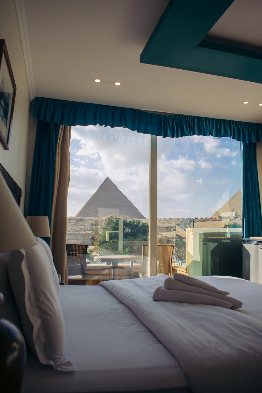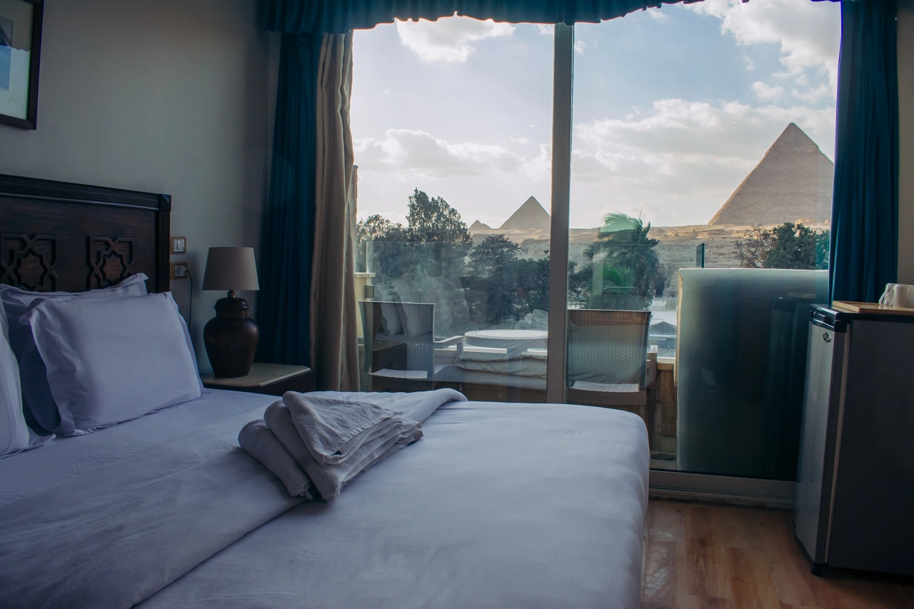Perfect for families or groups, our Quadruple Room offers spacious comfort and a private balcony with breathtaking views of the Pyramids of Giza. Featuring two king-size beds, and sofa a welcoming atmosphere, and all the essentials for a relaxing stay, it’s the ideal choice for sharing memorable moments. Enjoy the magical pyramid view as you relax on the balcony, morning or evening.